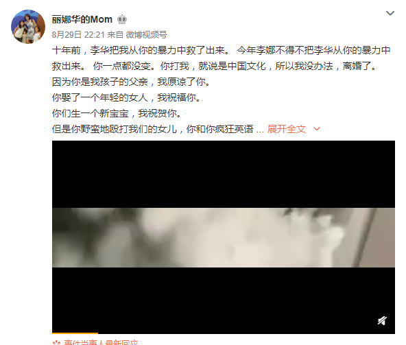 8月29日夜,疯狂英语创始人李阳前妻李金(微博名为“丽娜华的Mom”,简介自称“Kim”)在微博发视频称李阳殴打女儿。