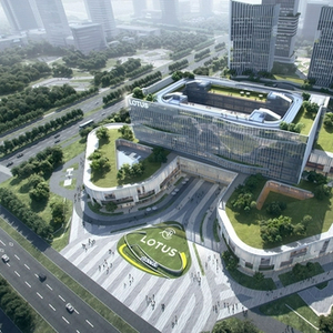 位于武汉经开区军山新城的路特斯科技公司全球总部效果图。