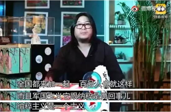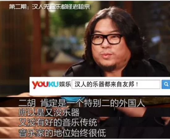 在这些节目中,他还是标志性的造型——大脸、长发,只是手里多了一柄折扇,翘着二郎腿,看似学富五车、满腹经纶地谈古论今、指点江山。几年间,高晓松留下了不少惊人言论:“郑成功是最大倭寇”“四大发明全是假的”“汉人没有音乐细胞”“对中国最好的是美国”……甚至对日本军国主义和靖国神社,他也有“独到见解”。