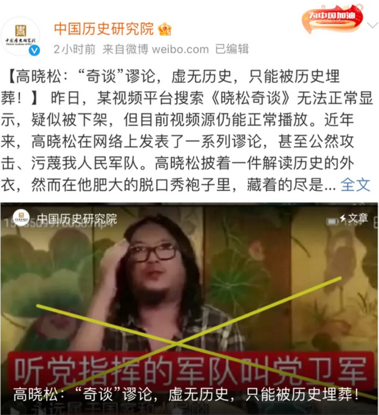 中国历史研究院官方微博更是直斥《晓松奇谈》为谬论。