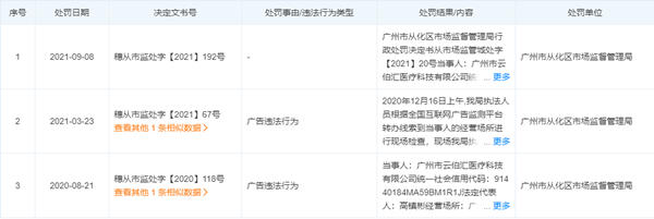 中国网财经9月9日讯(记者杜丁 见习记者安荻)今日,信用广州发布一则关于广州市云伯汇医疗科技有限公司的行政处罚信息(穗从市监处字[2021]192号)。