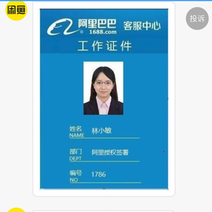 当记者提出质疑,询问“客服”是否在实施诈骗行为时,对方发来其“工作证件”图片——上方印有“阿里巴巴客服中心工作证件”字样,中间有照片、姓名和编号,其部门为“阿里授权签署”。