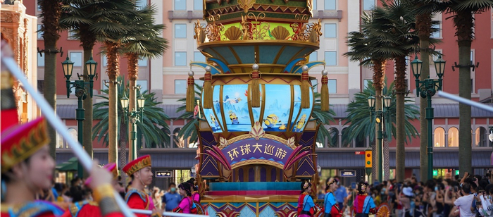 和园区内其他固定表演不同,环球大巡游在表演的过程中穿越了园内几个主要区域,包括好莱坞、侏罗纪世界努布拉岛和小黄人乐园。巡游路线全长1.2公里,截止目前成为环球主题公园中拥有最长路线的花车巡游表演。