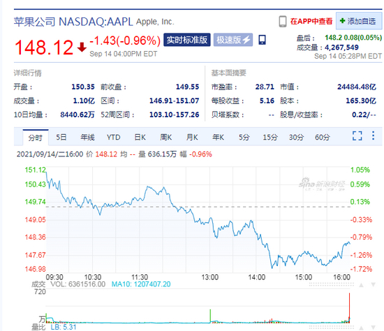 而苹果股价在80分钟的发布会结束时,其股价一度跌幅扩大至1.5%。
