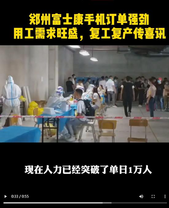 郑州厂区在招工宣传中表示,已进入新机种量产高峰期,截止到九月底,新增用工需求20万人。这几乎相当于短时间内重新召集装满一座工厂的人,临时工暴增,迅速填补进产线。