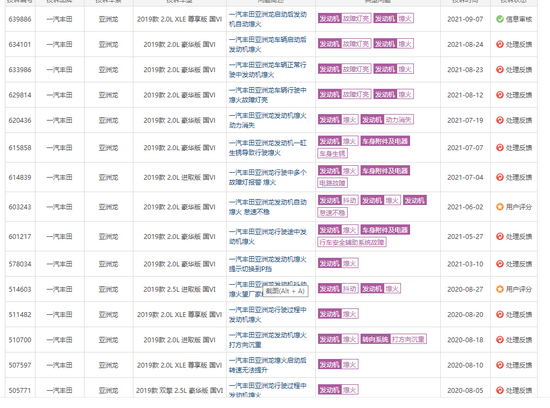 实际上,近年来,丰田旗下多个热门车型屡因质量问题被消费者投诉,亚洲龙“熄火门”事件只是其质量滑坡的一个缩影。