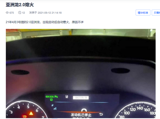 据车主们的帖子反映,汽车在行驶时,会出现发动机突然熄火,汽车失去动力的问题。此时,仪表盘会出现“发动机已停止,转向助力低”,或者是“制动力低”,又或者是“充电系统故障”等故障提示。