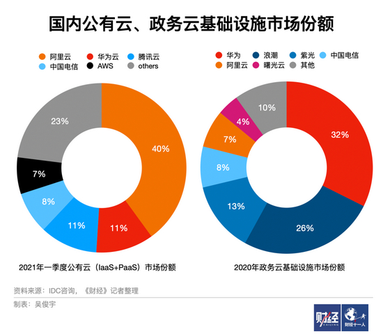 不过,看局部也要看整体。政企市场的采购通常是数千万元甚至数亿元的大单,其采购范围包括公有云,还有混合云、私有云,以及中台、应用、ICT等其他软硬件数字化服务。阿里云、华为、中国电信、中国移动时常是同一个项目的直接参与者。