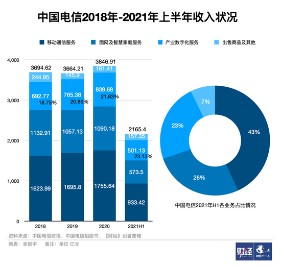与此相反,三大运营商的产业数字化服务业务比重逐年增长,2021年上半年,中国电信产业数字化收入占总营收的23.13%,中国移动政企业务为18.62%,中国联通产业互联网收入为15.5%。