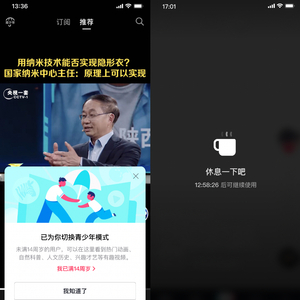 9月17日,抖音宣布升级青少年防沉迷措施,14岁以下实名认证用户已全部进入青少年模式,且无法自行退出。在该模式下,用户每天只能使用不超40分钟,且晚22点至次日早6点不能使用。抖音也成为国内各大视频平台中首家推出如此严格保护措施的平台,其他同类产品尚不具备相同能力。