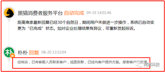 8月20日,朴朴回复:经核实,已有客服人员联系客户,诚恳致歉,已经向客户提供方案。感谢客户的反馈。