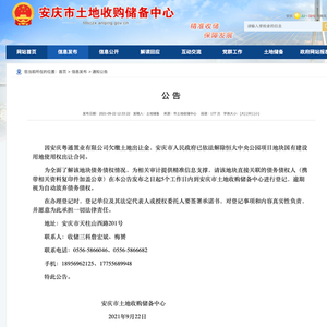 公告称,为全面了解该地块债务债权情况,为相关审计提供精准信息支撑,请该地块直接关联的债务债权人(携带相关资料复印件加盖公章)在本公告发布之日起5个工作日内到安庆市土地收购储备中心进行登记,逾期视为自动放弃债务债权。