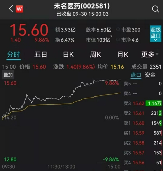 以此计算,成交价分别是9.13元和9.2元。而未名医药的最新收盘价为15.6元,总市值103亿元。也就是说,买家最终以6折左右的价格买到了相应的股份。