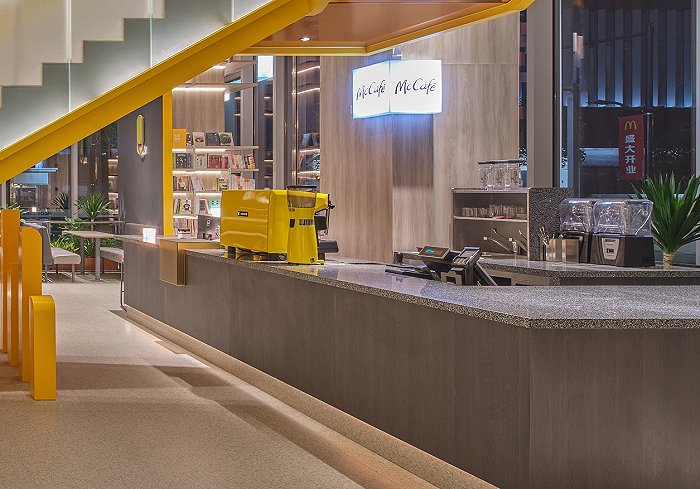 麦当劳中国的“巨无霸魔方”也完好融入了这样的社区氛围之中。在这栋总部大楼一层和二层,一家全新的麦当劳总部旗舰店也已经开业。它拥有独立的麦咖啡吧台,此外还与中信书局联合制造了一个适合阅读、咖啡休闲和亲子娱乐的空间体验。这些空间,未来也将起到连接社区的作用——它可以作为附近白领的用餐选择,家庭和游客的休闲之地,居民有别于家和工作地的放松场所。