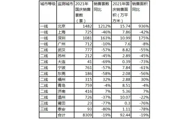 2021年国庆假期15城商品住宅销售情况一览