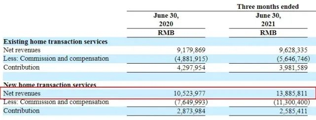 2021年二季度,贝壳二手房营收为96亿元,同比仅增4%,与这种疲弱对照的是,一季度的收入同比增速高达202.1%。