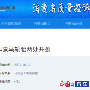 中国网汽车10月18日讯 (记者 王忆东)众所周知,轮胎是汽车上与地面接触的唯一部位,一旦出现包括开裂、掉块等质量问题,将存在严重的安全隐患。日前,中国网汽车质量投诉平台就接到一位来自马自达昂克赛拉车主投诉称:新车不到半年,后轮的优科豪马轮胎就出现了两处开裂。