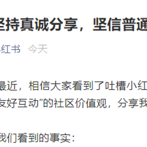 一句话总结:我们将竭尽全力帮助大家在小红书App获得更全面的信息。小红书是一个普通人帮助普通人的社区,人们在这里分享自己的日常生活和经验,并且在帮到别人时,获得快乐和满足。这种氛围是我们格外珍视的,也是我们将为之持续努力的。最后,再次向用户致以最诚挚的歉意,也感谢所有的批评,这些都是我们变得更好的动力。
