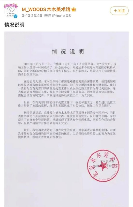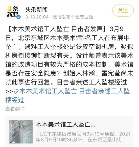 木木美术馆工人坠亡事件相关新闻