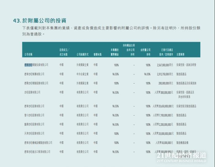 近期公告突然爆雷的辽宁忠旺精制和辽宁忠旺集团是中国忠旺的主要业务主体公司,中国忠旺分别持有上述两家公司100%和96.55%的股权。