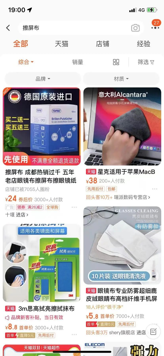 总结来说,对于这款抛光布,苹果官网除了描述其质地柔软外,并没有提及其他更多的功能或用途,145元的价格实属偏高,劝退了很多人。在淘宝上搜了一下可以看到,普通擦屏布大致也就在10-40元不等。