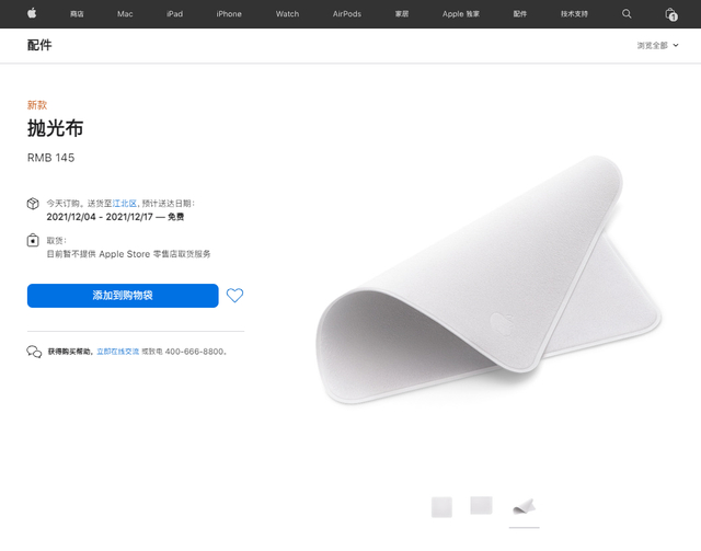 目前在苹果官方线上商城显示该抛光布已经全部售空,如消费者现在购买该商品,收货时间将排到今年12月初至中旬。苹果美国官网显示,这块售价19美元的抛光布同样已经售竭,当日下单需等待6至8周才能送达。