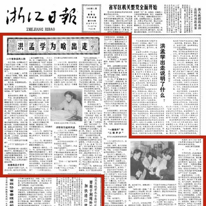 1985年1月4日,浙江日报头版头条刊发了钟睒睒采写的《洪孟学为啥出走?》,并配发评论员文章《洪孟学出走说明了什么?》