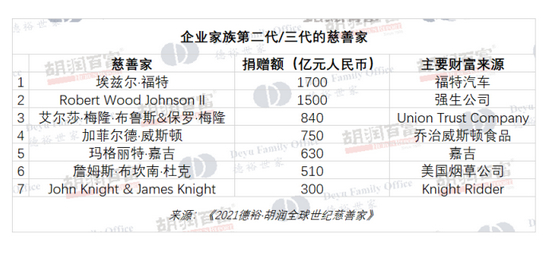 “通常大多是第一代慈善家不仅会考虑挣钱,也会考虑怎样捐钱。但给我印象比较深刻的是我们榜单中有7位慈善家是在企业家族第二代、第三代进行捐赠,例如福特基金会,是第二次工业革命的领先人物亨利福特的儿子所创立的。”