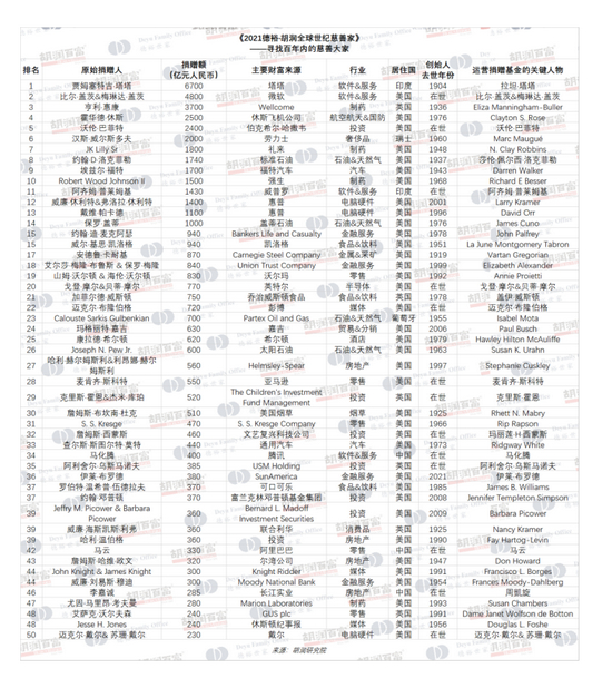 提供有质量的榜单与调研的胡润研究院发布《胡润全球世纪慈善家》