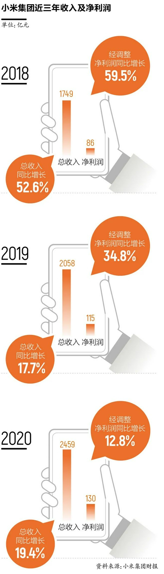 “拿下全球第一”绝非易事。小米手机2020年的出货量为1.46亿台,今年的目标为2亿台左右。回看全球智能手机的历史,目前全球第一三星的年出货量为2.6亿台左右,这意味着小米若要稳定地坐上第一的位置,三年后的出货量就要超越这个数字。