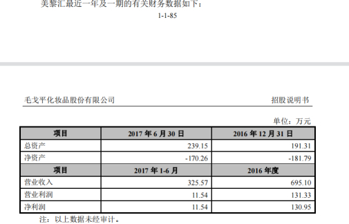 对于该公司的财务数据为何只披露到了2017年,每经记者询问了毛戈平公司了解项目的相关人员。“公司通过IPO肯定是按照证监会标准申报了所有材料的。”