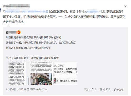 也有网友评论:退场时给自己保留了多少体面,返场时就能收获多少掌声,一个久站C位的人能有侧身让贤的胸襟,总不会落到大败亏输的境地。