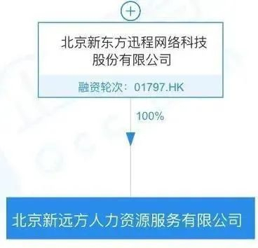 企查查显示,“北京新远方人力资源服务有限公司”由新东方在线全资控股。