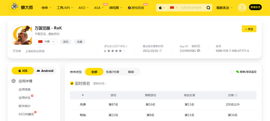 不过《万国觉醒》游戏排名逐渐下滑,为游戏的迭代做准备不失为较好的选择。