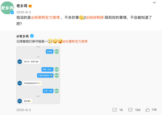 经常说官微要人性化,但真正能做到的品牌并不多。老乡鸡随意的文案,个人化的语言,“不正经”的态度吸引无数微博粉丝,老乡鸡的官微除了每天”咯咯哒“,在与蓝微的互动中,也充满趣味性。比如:跟周黑鸭讨论组CP 问题,跟大黄鸭“聊天”,跟支付宝互相揶揄、还跟杜蕾斯官方微博的炒CP.....