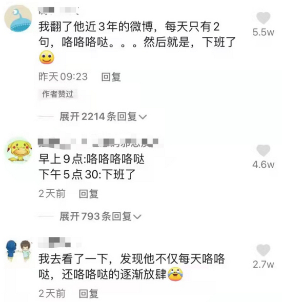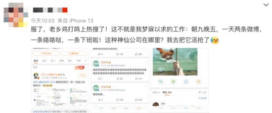 朝九晚五,一天两条微博:一条咯咯哒,一条下班啦!这应该是很多打工人梦寐以求的工作了。