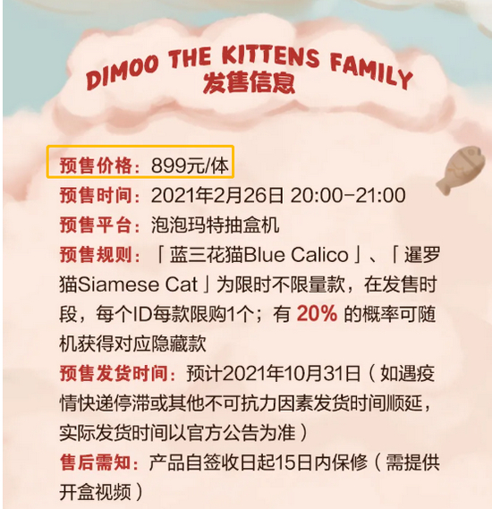 而银柿财经记者在泡泡玛特的淘宝官方旗舰店的页面上看到,上面明确写着,预售款按页面详情页标示的时间发货。