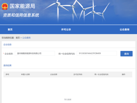 此外,记者在国家能源局资质和信用信息系统上,也未查询到瑞隆新能源的电力业务许可证信息。