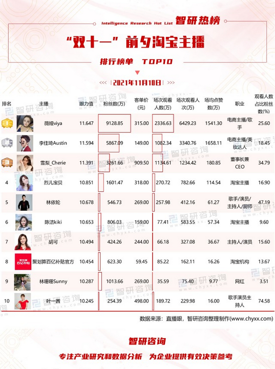 2021年,双十一前夕淘宝主播排行榜单,雪梨排名仅次于薇娅李佳琦