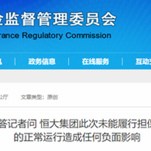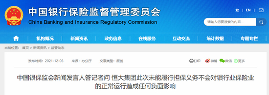 银保监会:恒大集团此次未能履行担保义务不会对银行业保险业的正常运行造成任何负面影响