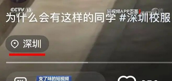 在一个短视频中,位置坐标显示为深圳,该短视频下方加注了“深圳校服”字样。而记者发现,这条长约1分钟的短视频内容是尾随一名身穿校服的女学生一路走过教室,最终进入了女厕所。