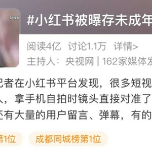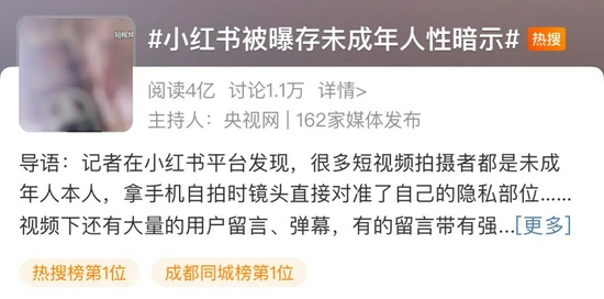 小红书泄露未成年身体隐私!频推送视频,还“甩锅”监护人?