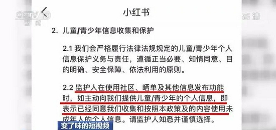 而记者发现,在“小红书”APP的用户协议中特别指出“重视青少年儿童的个人信息保护”,但在其《儿童青少年个人信息保护规则》协议中却注明“监护人在使用社区、晒单及其他信息发布功能时,如主动向我们提供儿童青少年的个人信息,即表示已经同意我们收集和按照本政策的内容使用未成年人的个人信息。”