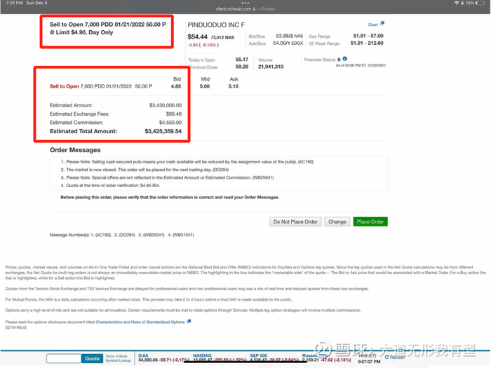 不过,从截图来看,段永平的操作还是比较保守的,通过卖7000张put来看涨拼多多。即别人给他4.9美元,获得一项权力:在2022年1月22日以50美元一股的价格将拼多多卖给他。