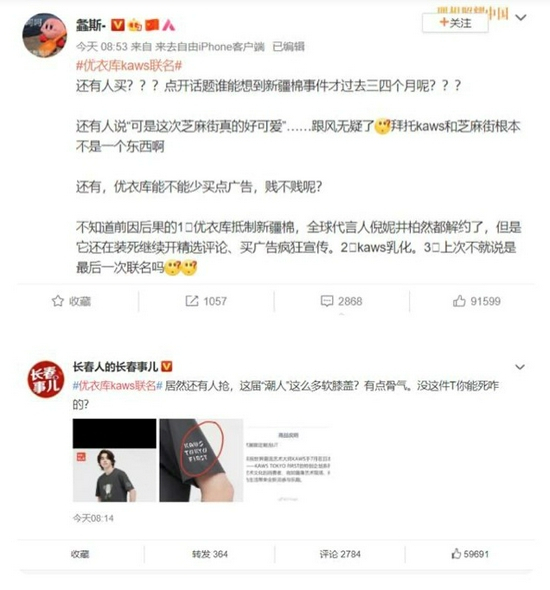 但是如今国门早已打开,越来越多的消费者已了解到优衣库在日本定价更低的事实。今年4月,“新疆棉事件”爆发,优衣库在民族主义情绪中被部分消费者抛弃。当月,优衣库在中国电商平台销量受到重挫,下跌20%以上。往年,优衣库夏天推出的联名款会被疯抢。但是今年,优衣库再次联名KAWS,却被“骂惨了”。
