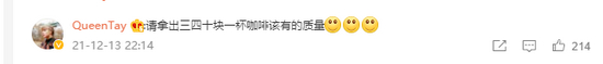 网友QueenTay表示,请拿出三四十块一杯咖啡该有的质量。