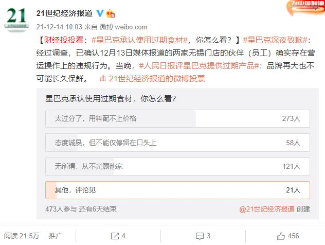 21网调实验室发起的调查显示,仅12%的投票网友认为星巴克道歉“态度诚恳”。多数投票网友认为,星巴克门店的做法太过分,用料与价格不匹配。