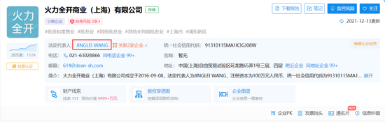 股权穿透显示,宏聲文化有限公司、火力全开商业(上海)有限公司均与李靓蕾有关联。其中,火力全开商业(上海)有限公司的法定代表人为李靓蕾。