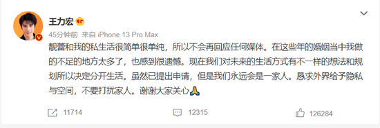 15日,王力宏在个人社交平台进行了回应,宣布两人离婚。