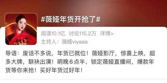 逃税前夕薇娅年货节话题 图源:微博截图